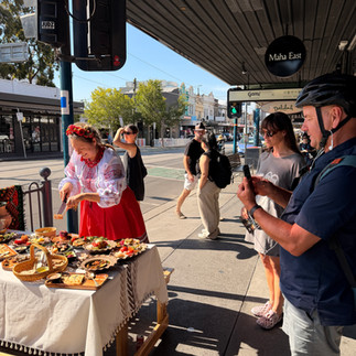 We hosted a menu degustation for people walking by — inviting passers-by to taste, chat, and experience Ukrainian food and hospitality in the most open and joyful way.